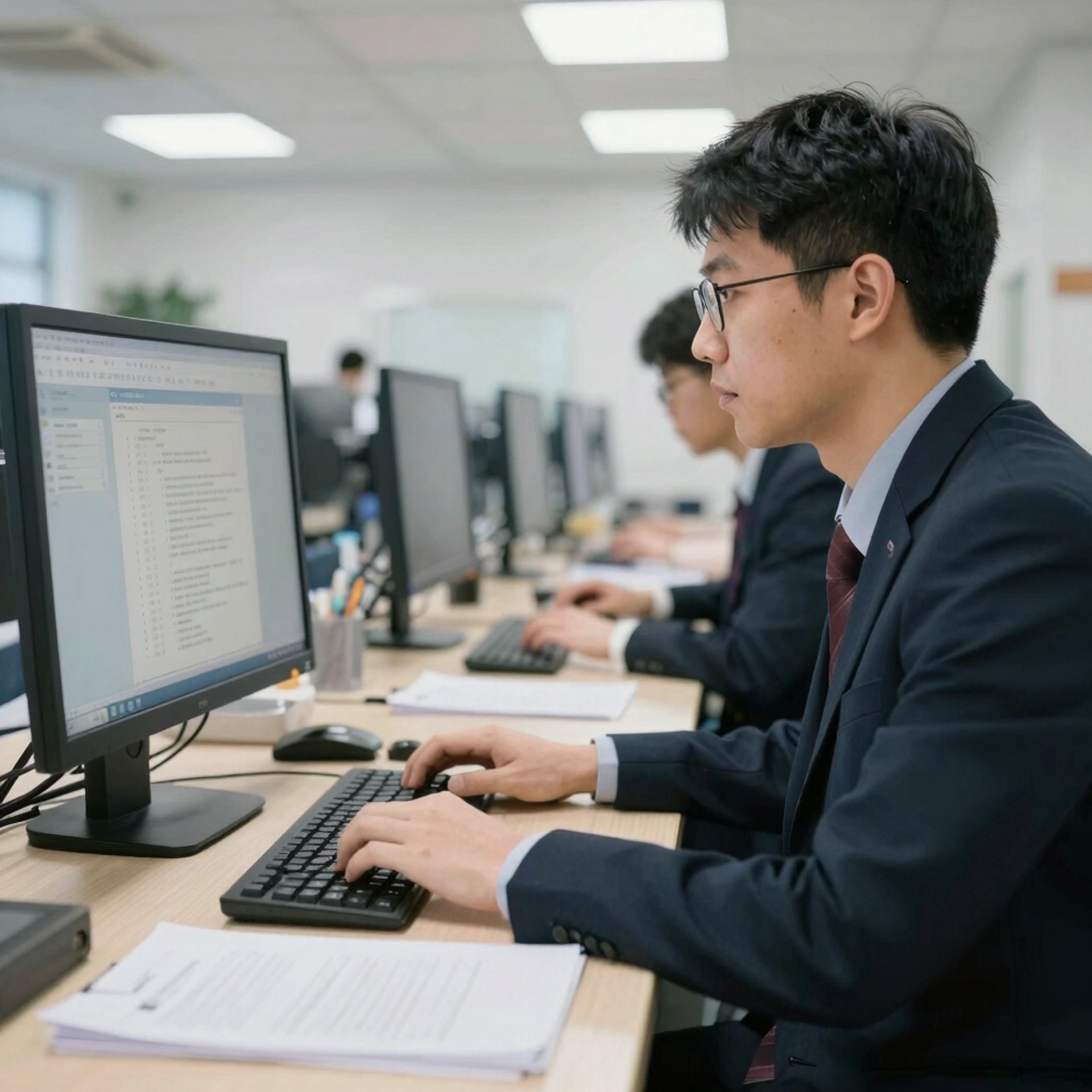 A friendly digital marketer working on a laptop in a cozy office in Córdoba.